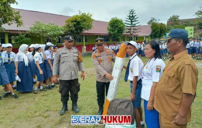 KARO | Deraphukum.click | Kapolsek Mardingding AKP C.H. Nababan melakukan kunjungan resmi ke SMP Swasta Musyawarah Perbulan, Kecamatan Lau Baleng, Kabupaten Karo, pada Senin(30/09/2024). Dalam kunjungannya, Kapolsek menyerahkan bantuan berupa satu unit tenda pramuka kepada pihak sekolah, yang diterima langsung oleh Kepala Sekolah Siska Wati br Ginting.