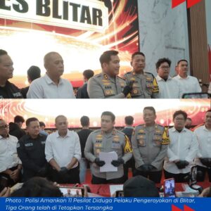 “Tiga orang dari 11 yang kami amankan, telah kami tetapkan sebagai tersangka berdasarkan alat bukti yang cukup dan kami tahan,” tegas AKBP Arif Fazlurrahman saat konferensi pers di Polres Blitar, Selasa (17/2).