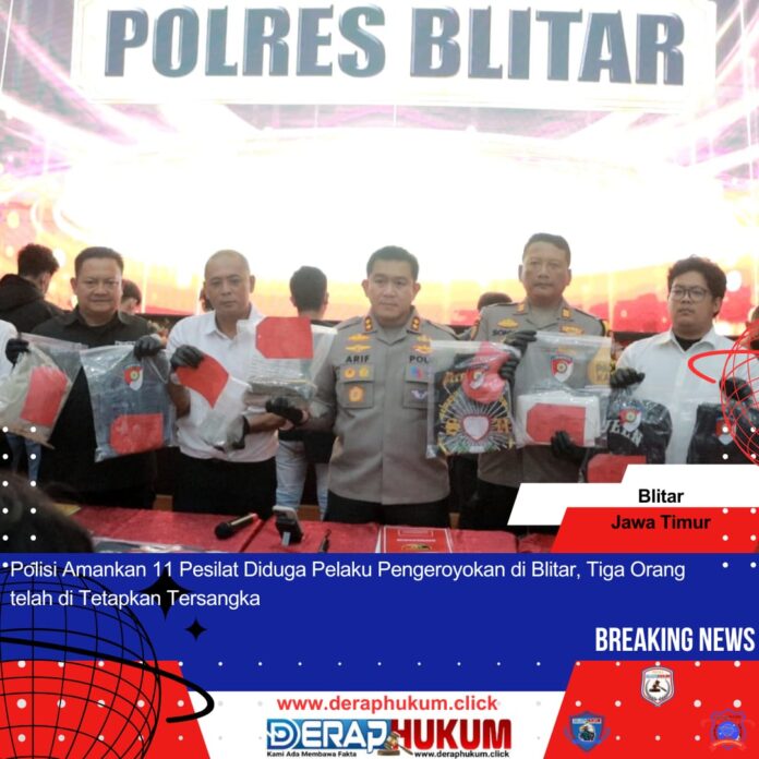 BLITAR-JAWA TIMUR | Deraphukum.click | Polres Blitar Polda Jatim menangkap 11 oknum pesilat yang membuat onar dengan melakukan perusakan, pengeroyokan dan pencurian.