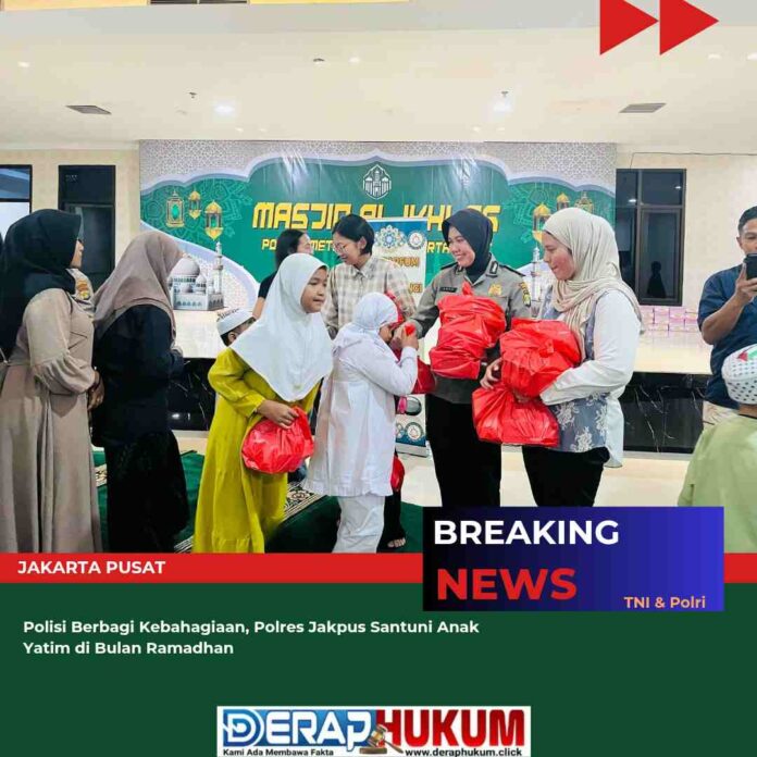 JAKARTA PUSAT | Deraphukum.click | Suasana haru dan penuh kebersamaan menyelimuti Masjid Al-Ikhlas, Polres Metro Jakarta Pusat, Kamis (20/3/2025) sore. Dalam momen penuh berkah ini, kepolisian menggelar kegiatan buka puasa bersama dan memberikan santunan kepada anak yatim piatu.