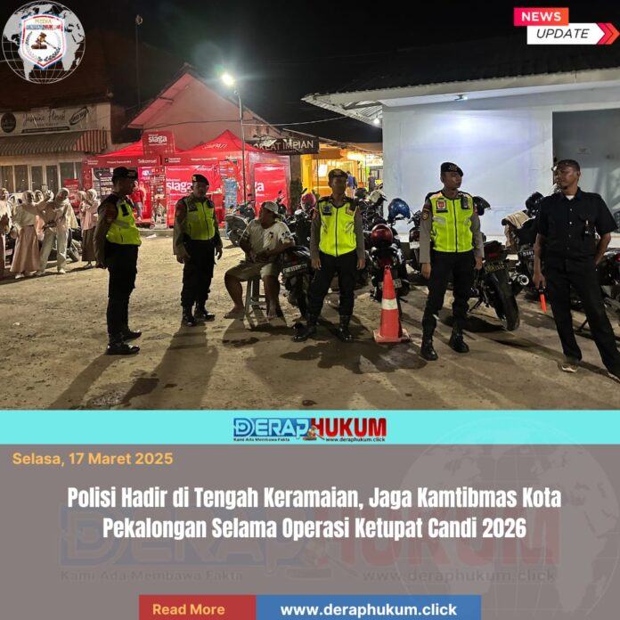 PEKALONGAN KOTA, | Deraphukum.click | Polres Pekalongan Kota – Polda Jateng – Dalam rangka menjaga keamanan dan ketertiban masyarakat menjelang perayaan Idul Fitri 1447 H/ 2026 M, personel Sat Samapta Polres Pekalongan Kota melaksanakan patroli malam di sejumlah titik keramaian di wilayah Kota Pekalongan, Senin (16/3/2026) malam.