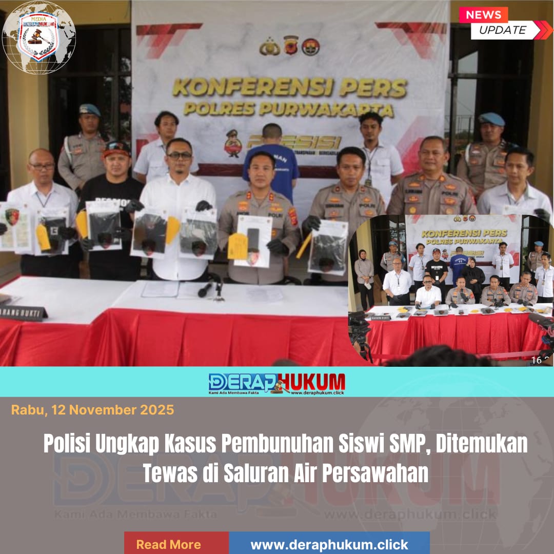 Kabid Humas Polda Jabar Kombes Pol. Hendra Rochmawan S.I.K., M.H mengatakan bahwa Polisi beberkan kasus pembunuhan terhadap siswi SMP berinisial J (15) ditemukan tewas di saluran air persawahan di Kampung Bojongloa, Desa Gandasoli, Kecamatan Plered, Pada Sabtu, 18 Oktober 2025, silam.