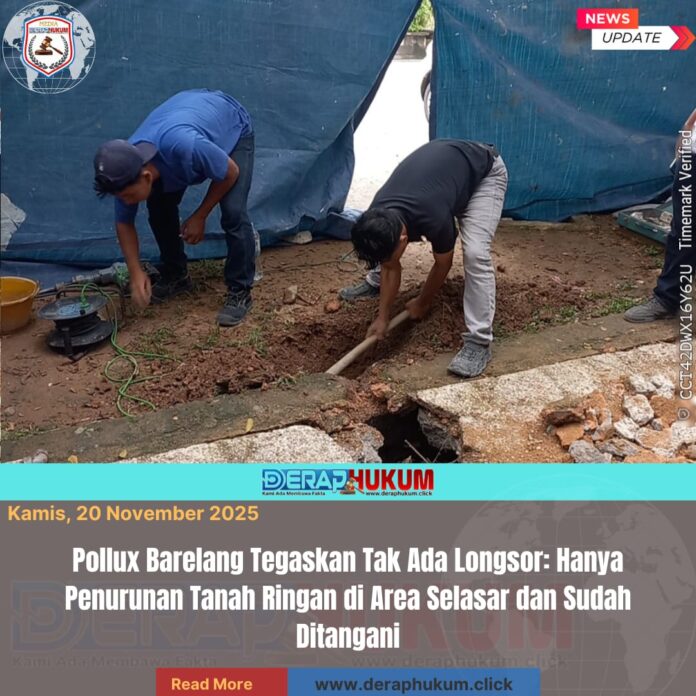 Batam, Kepulauan Riau | Deraphukum.click | Manajemen PT Pollux Barelang Mega Superblok memberikan klarifikasi resmi terkait informasi yang sempat beredar mengenai dugaan longsor di kawasan fasilitas umum (fasum) ruko. Klarifikasi disampaikan langsung di lokasi kejadian, disaksikan awak media dan petugas sekuriti perusahaan. Pihak manajemen memastikan kondisi di lapangan aman dan tidak ditemukan tanda-tanda longsor sebagaimana diberitakan sebelumnya.