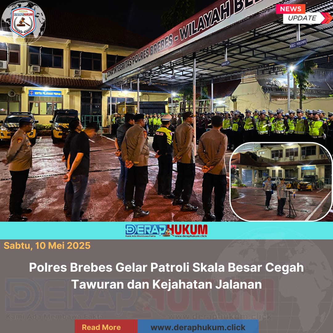 Brebes, Jawa Tengah | DerapHukum.click | Dalam rangka menjaga keamanan dan ketertiban masyarakat, Polres Brebes menggelar patroli skala besar pada malam akhir pekan, Sabtu (10/5/2025).