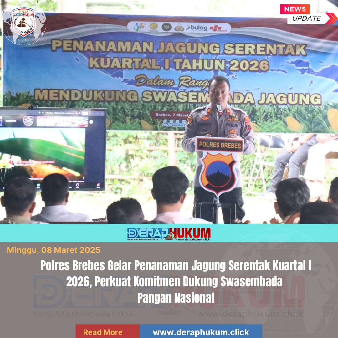 Brebes,Jawa Tengah | Deraphukum.click | Jajaran Forum Koordinasi Pimpinan Daerah (Forkopimda) Kabupaten Brebes melaksanakan kegiatan Penanaman Jagung Serentak Kuartal I Tahun 2026 sebagai bentuk dukungan nyata terhadap program swasembada pangan nasional.