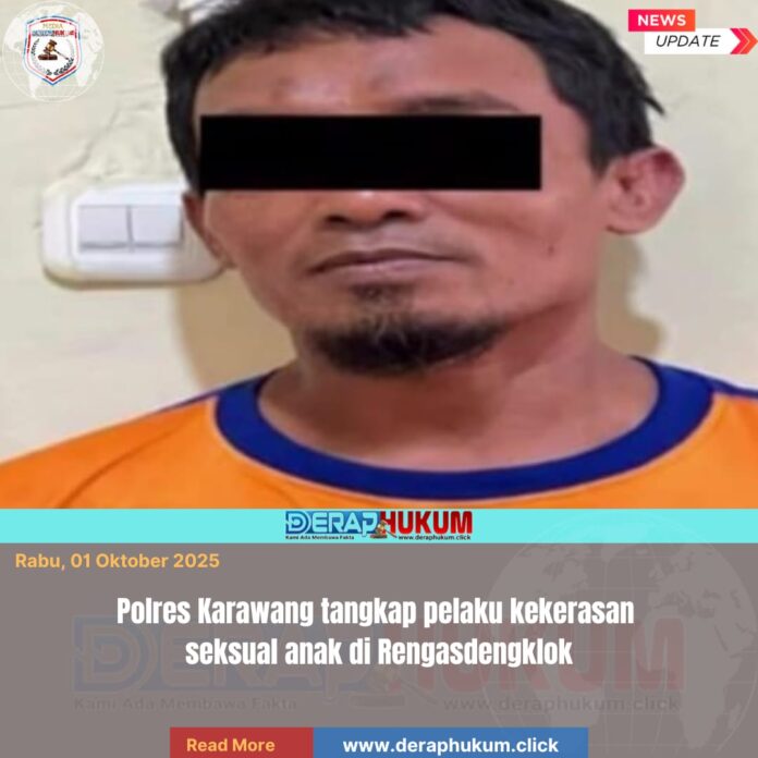 KARAWANG,Jawa Barat | Deraphukum.click | Polres Karawang bergerak cepat menindaklanjuti laporan dugaan tindak pidana kekerasan seksual terhadap anak di bawah umur yang terjadi di wilayah Kecamatan Rengasdengklok. Satuan Reserse Kriminal (Satreskrim) melalui Unit Perlindungan Perempuan dan Anak (PPA) berhasil mengamankan seorang pria terduga pelaku, yang kini tengah menjalani proses penyidikan lebih lanjut.