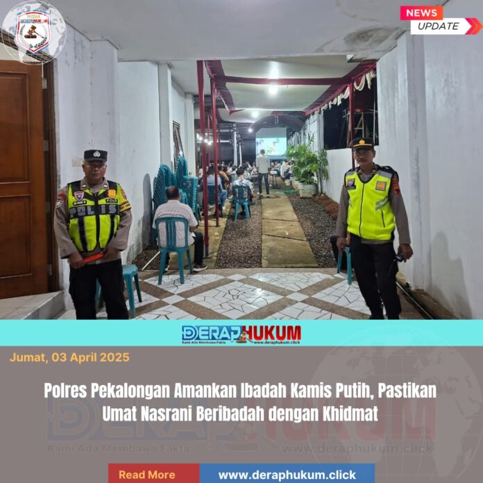 Pekalongan,Jawa Tengah | Deraphukum.click | Polres Pekalongan – Polda Jateng – Polres Pekalongan bersama jajaran Polsek melaksanakan pengamanan kegiatan ibadah Kamis Putih di sejumlah gereja yang berada di wilayah hukumnya, Kamis (2/4/2026).