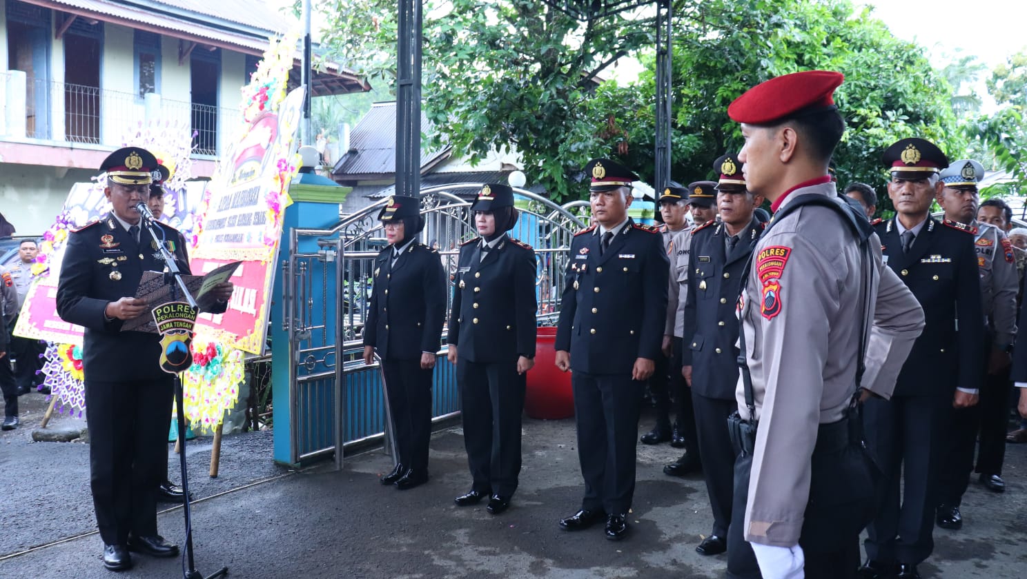 Upacara persemayaman di rumah duka dipimpin langsung oleh Wakapolres Pekalongan Kompol Muhammad Nurkholis, S.H. Hadir dalam kesempatan tersebut jajaran PJU Polres Pekalongan, Kapolsek jajaran, personel Koramil Kandangserang, hingga pengurus Bhayangkari.