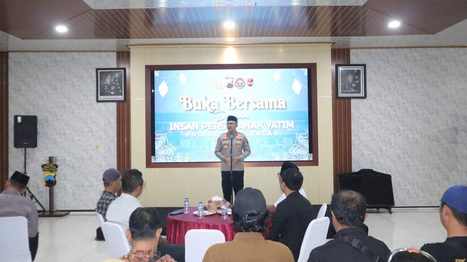 Kegiatan kemudian dilanjutkan dengan penyerahan bingkisan kepada anak-anak yatim piatu. Penyerahan dilakukan secara simbolis dan berurutan, diawali oleh Kapolres Pekalongan, kemudian PJU POlres dan rekan-rekan media, sebelum ditutup dengan buka puasa bersama. (Ari )