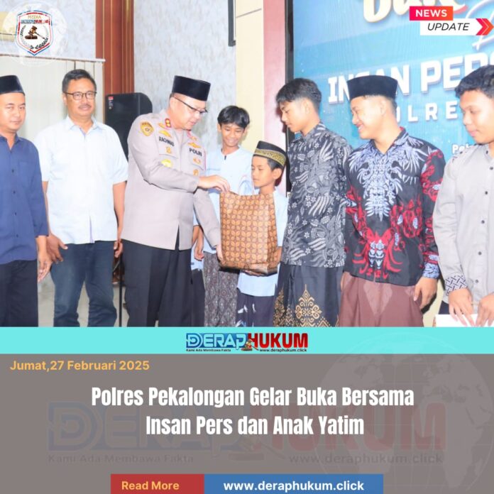 Pekalongan,Jawa Tengah | Deraphukum.click | Polres Pekalongan – Polda Jateng – Polres Pekalongan menggelar kegiatan buka bersama dengan insan pers, Kamis (26/2/2026). Kegiatan tersebut berlangsung di aula Polres Pekalongan dan dihadiri Kapolres Pekalongan AKBP Rachmad C. Yusuf, S.I.K., M.Si bersama para pejabat utama (PJU).