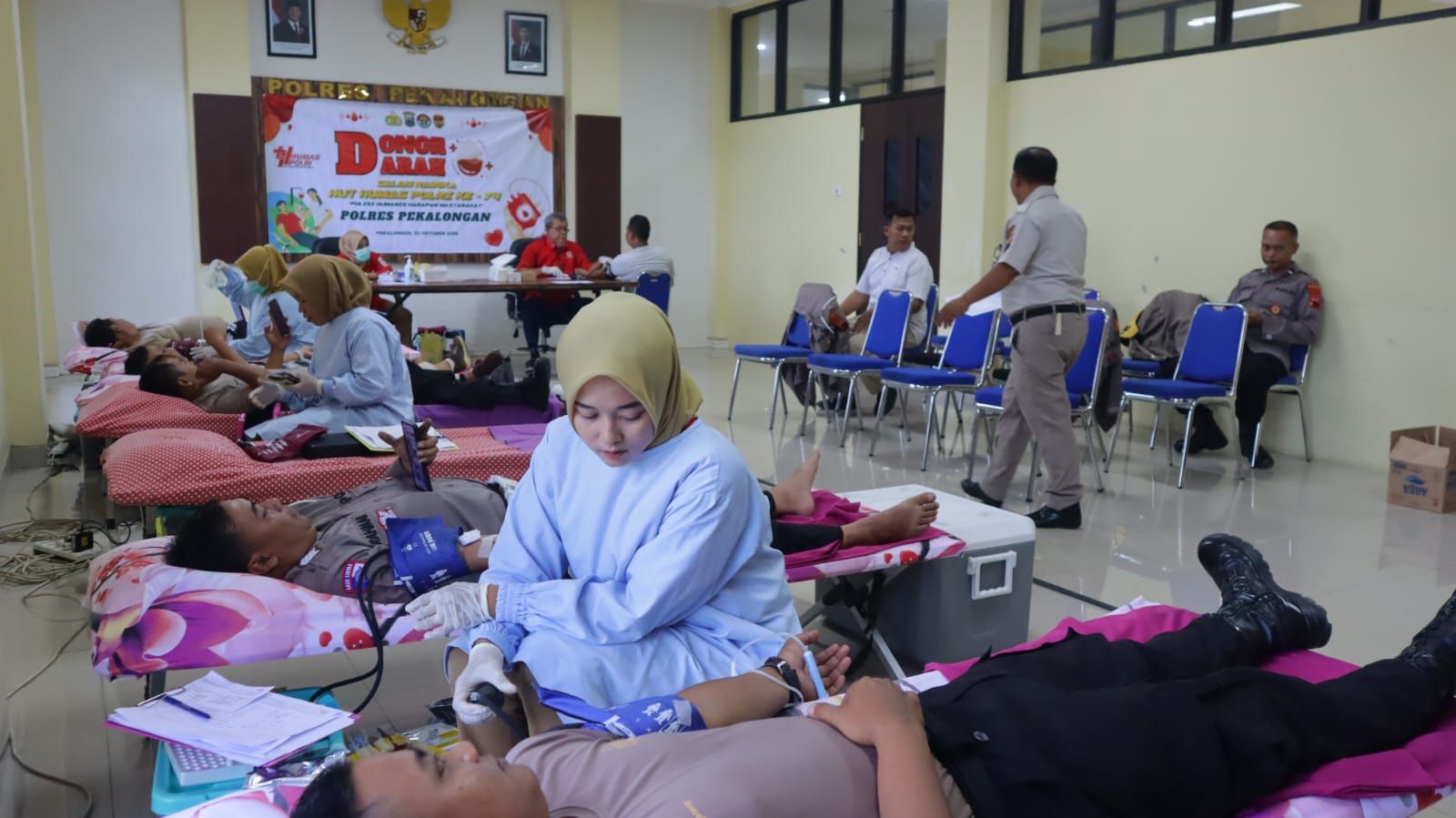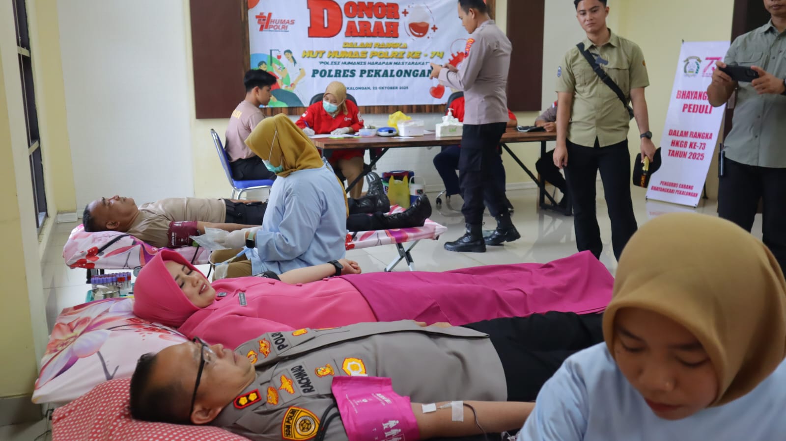 PEKALONGAN, JAWA TENGAH | Deraphukum.click | Dalam rangka menyambut Hari Jadi Humas Polri ke-74 tahun 2025, Polres Pekalongan menggelar kegiatan bakti sosial donor darah serentak di Aula Presisi Mapolres Pekalongan, Rabu (22/10/2025). Kegiatan ini digelar sebagai bentuk kepedulian sosial dan kemanusiaan dengan mengusung tema “Polisi Humanis, Harapan Masyarakat.”