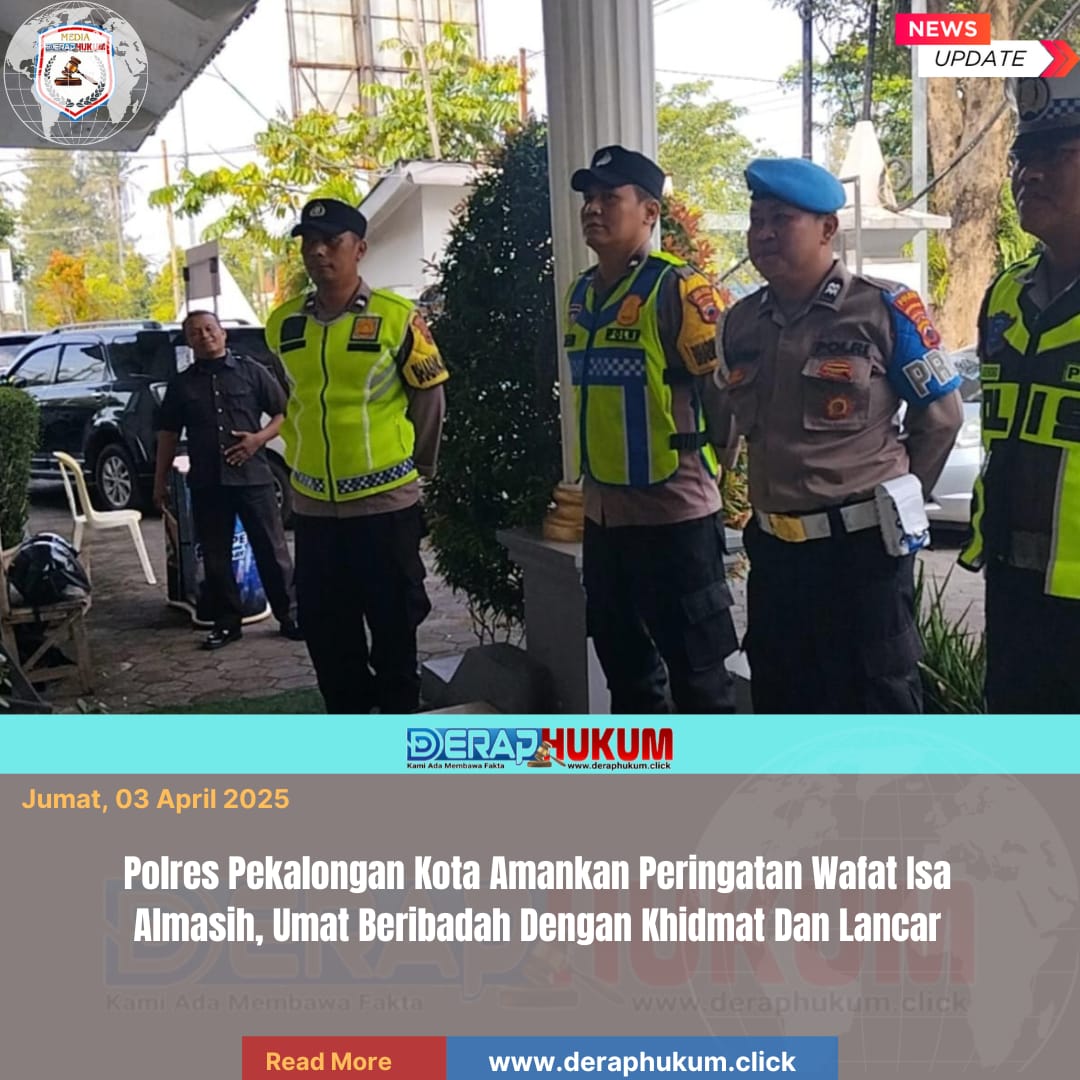 Pekalongan,Jawa Barat | Deraphukum.click | Polres Pekalongan Kota – Polda Jateng – Guna memastikan jalannya ibadah berjalan aman dan lancar. Polres Pekalongan Kota melaksanakan pengamanan rangkaian peringatan Wafatnya Isa Almasih di Gereja Kristen Indonesia (GKI) Kota Pekalongan, Jumat (3/4/2026) pagi.