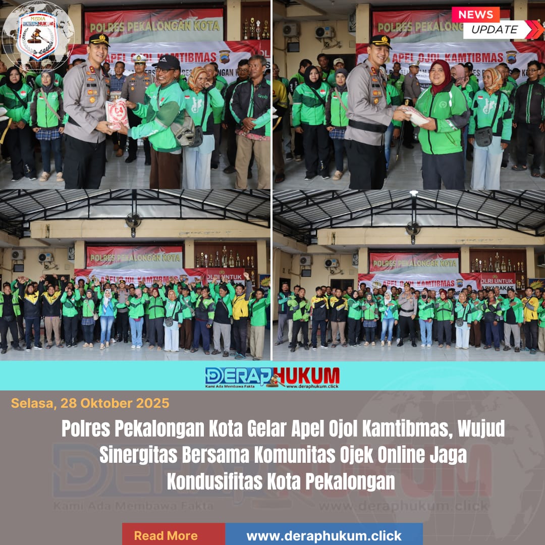 Pekalongan Kota, | Deraphukum.click | Polres Pekalongan Kota – Polda Jateng – Puluhan pengemudi ojek online (Ojol) dari berbagai komunitas di Kota Pekalongan mengikuti Apel Ojol Kamtibmas yang digelar Polres Pekalongan Kota dengan mengusung tema “Jaga Kota Pekalongan Bersama Polres Pekalongan Kota”, Selasa (28/10/2025) pagi.