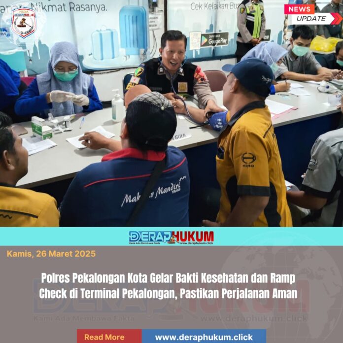 Pekalongan Kota, | Deraphukum.click | Polres Pekalongan Kota – Polda Jateng – Upaya menjamin keselamatan dan kesehatan masyarakat terus dilakukan jajaran Polres Pekalongan Kota bersama instansi terkait. Melalui kegiatan bakti kesehatan dan ramp check, pelayanan terpadu yang digelar di Terminal Tipe A Kota Pekalongan, Kamis (26/3/2026).