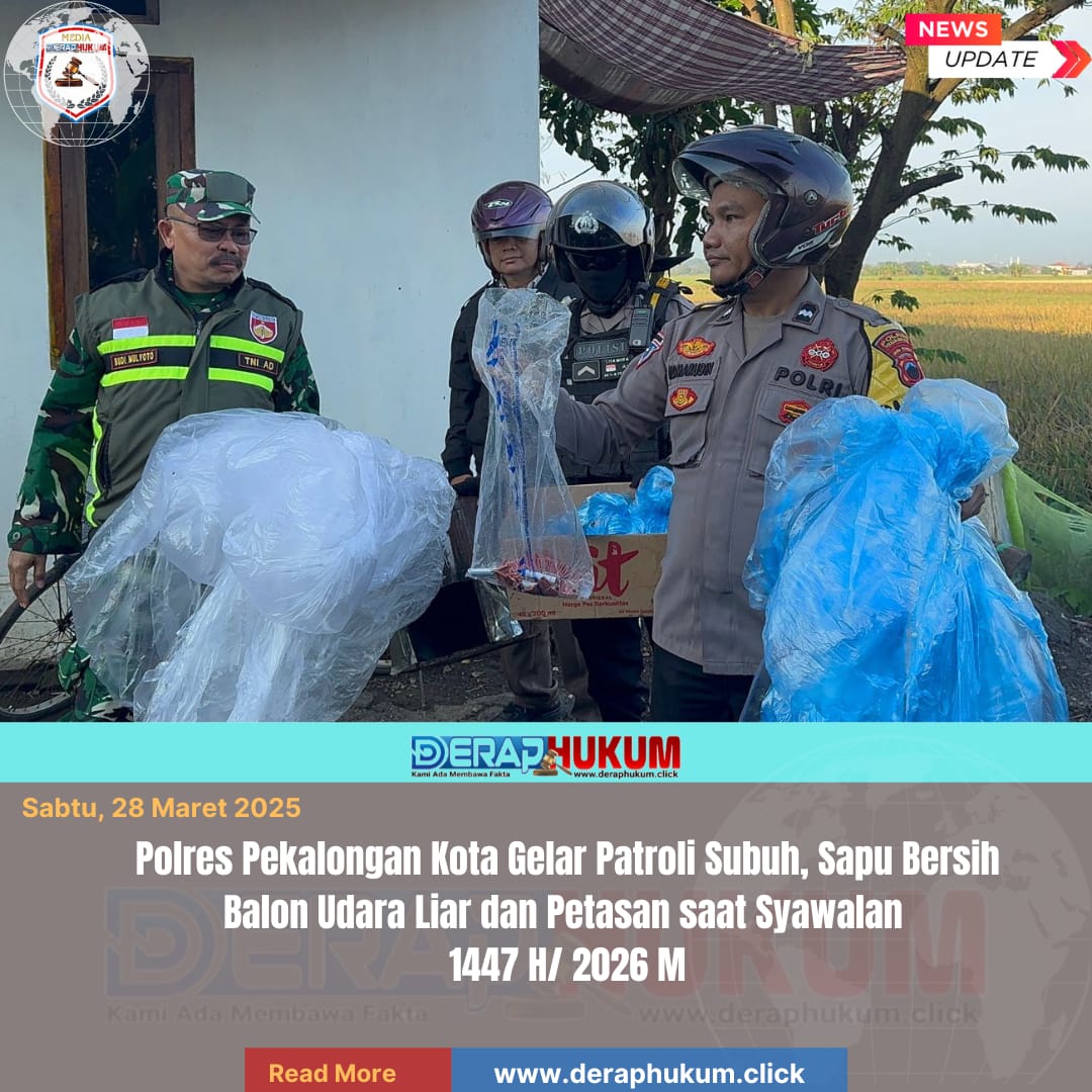 Pekalongan,Jawa Tengah | Deraphukum.click | Polres Pekalongan Kota – Polda Jateng – Dalam upaya menjaga kondusifitas kamtibmas serta keselamatan penerbangan pada perayaan Syawalan 1447 H/ 2026 M. Polres Pekalongan Kota Gelar Patroli Subuh sapu bersih “Saber” dengan sasaran balon udara liar dan petasan di wilayah Kota Pekalongan.