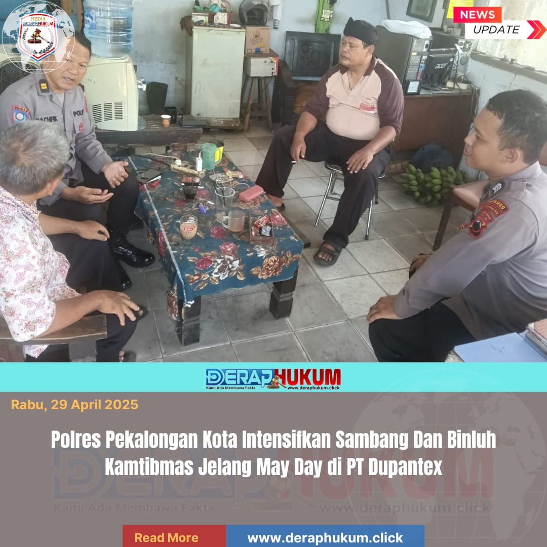 Pekalongan,Jawa Tengah | Deraphukum.click | Polres Pekalongan Kota – Polda Jateng – Menjelang peringatan Hari Buruh Internasional (May Day) 2026, jajaran Satbinmas Polres Pekalongan Kota mengintensifkan kegiatan sambang serta pembinaan penyuluhan terkait keamanan dan ketertiban masyarakat (binluh kamtibmas), pada Rabu (29/4/2026).