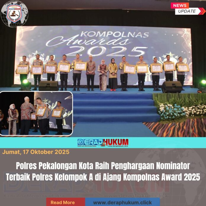 PEKALONGAN KOTA, JAWA TENGAH | DerapHukum.click | Polres Pekalongan Kota – Polda Jateng – Polres Pekalongan Kota kembali menorehkan prestasi membanggakan di tingkat nasional. Pada ajang Kompolnas Awards 2025, Polres Pekalongan Kota berhasil meraih penghargaan sebagai Nominator Terbaik pada kategori Polres Kelompok A. Penghargaan ini menjadi bentuk apresiasi atas kinerja, inovasi, serta dedikasi dalam memberikan pelayanan, perlindungan, serta pengayoman kepada masyarakat.