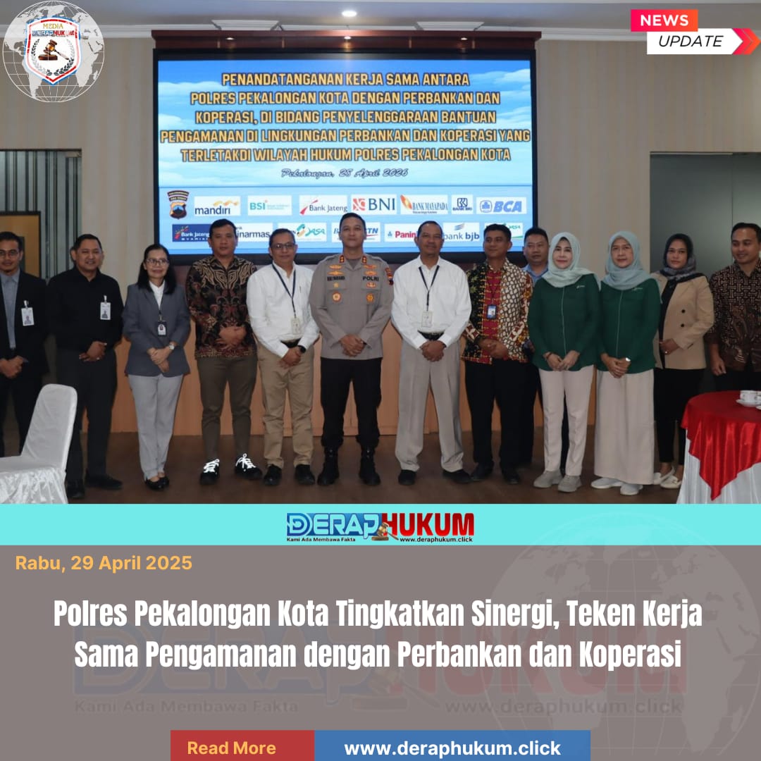 Pekalongan Kota, | Deraphukum.click | Polres Pekalongan Kota – Polda Jateng – Polres Pekalongan Kota menandatangani perjanjian kerja sama (PKS) dengan sejumlah perbankan dan koperasi di wilayah hukumnya, Selasa (28/4/2026). Kegiatan yang berlangsung di Aula Wicaksana Laghawa Mapolres ini menjadi langkah strategis dalam memperkuat pengamanan objek vital sektor keuangan.