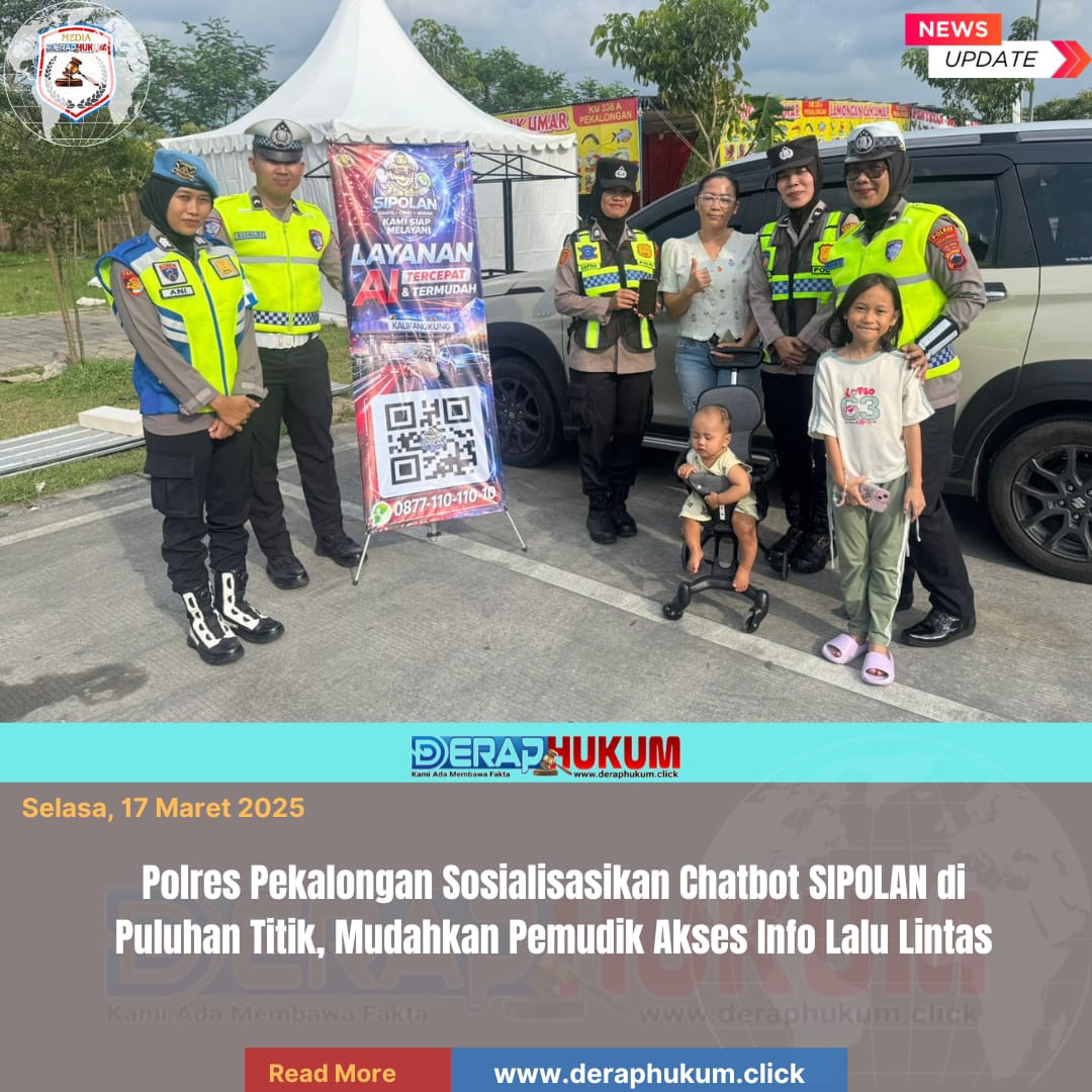 “Sosialisasi ini bertujuan mengenalkan Chatbot SIPOLAN kepada masyarakat. Melalui layanan WhatsApp, masyarakat dapat dengan cepat memperoleh informasi terkait kondisi lalu lintas, jalur mudik maupun jalur alternatif, lokasi pos pelayanan, hingga layanan SIM dan STNK,” ujar Rachmad dalam keterangannya, Minggu (15/3/2026).