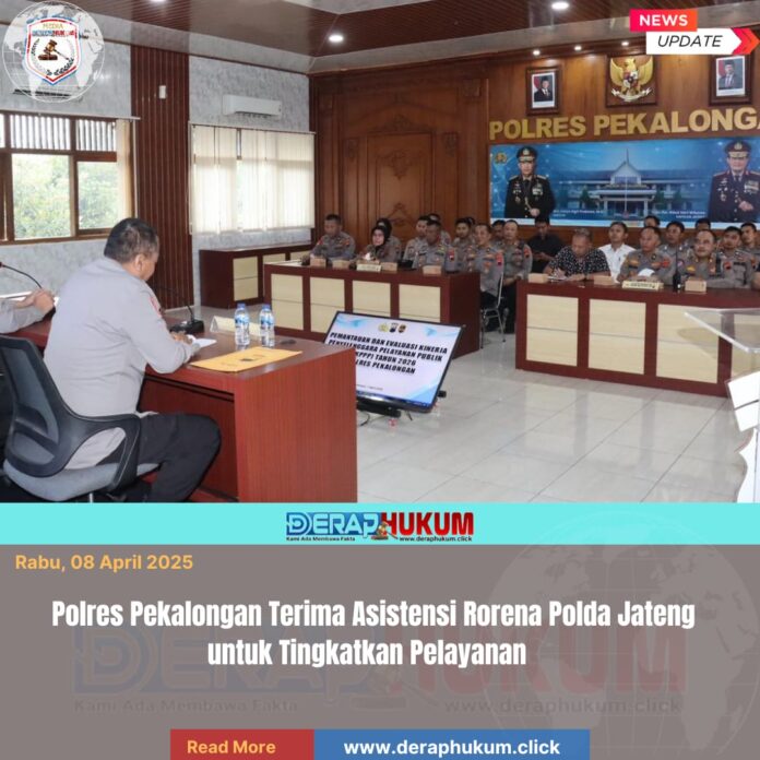 Pekalongan,Jawa Tengah | Deraphukum.click | Polres Pekalongan – Polda Jateng – Polres Pekalongan menerima kunjungan tim Biro Perencanaan (Rorena) Polda Jawa Tengah dalam rangka pelaksanaan asistensi, pemantauan, serta evaluasi kinerja penyelenggaraan pelayanan publik. Kegiatan tersebut berlangsung pada Selasa, 7 April 2026, bertempat di Aula Polres Pekalongan.