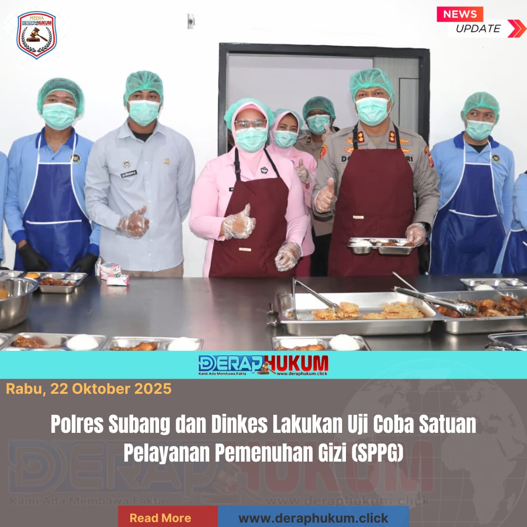Subang, Jawa Barat | Deraphukum.click | Polres Subang bersama Dinas Kesehatan Kabupaten Subang menggelar uji coba dan pengecekan Satuan Pelayanan Pemenuhan Gizi (SPPG) di Gedung SPPG Polres Subang, Selasa (21/10/2025) sekitar pukul 10.00 WIB.