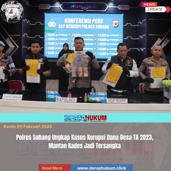 Subang,Jawa Barat l Deraphukum.Click l Polres Subang menggelar press release terkait pengungkapan kasus dugaan tindak pidana korupsi Dana Bantuan Keuangan Khusus Desa (BKK-BKUD) dan Bantuan Keuangan Provinsi Jawa Barat Tahun Anggaran 2023, yang terjadi di Desa Bendungan, Kecamatan Pagaden Barat, Kabupaten Subang, Kamis (5/2/2026).