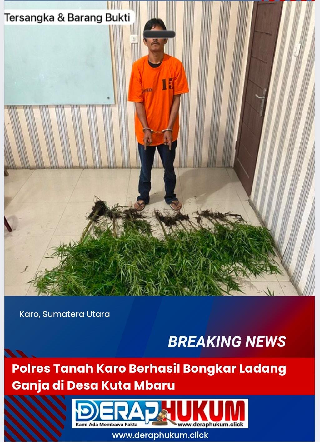 KARO | Deraphukum.click | Satuan Reserse Narkoba Polres Tanah Karo kembali mencetak prestasi dalam pemberantasan peredaran narkotika. Kali ini, petugas berhasil mengungkap ladang ganja di Desa Kuta Mbaru, Kecamatan Tiganderket, Kabupaten Karo, yang dikelola oleh seorang tersangka, HG(41).