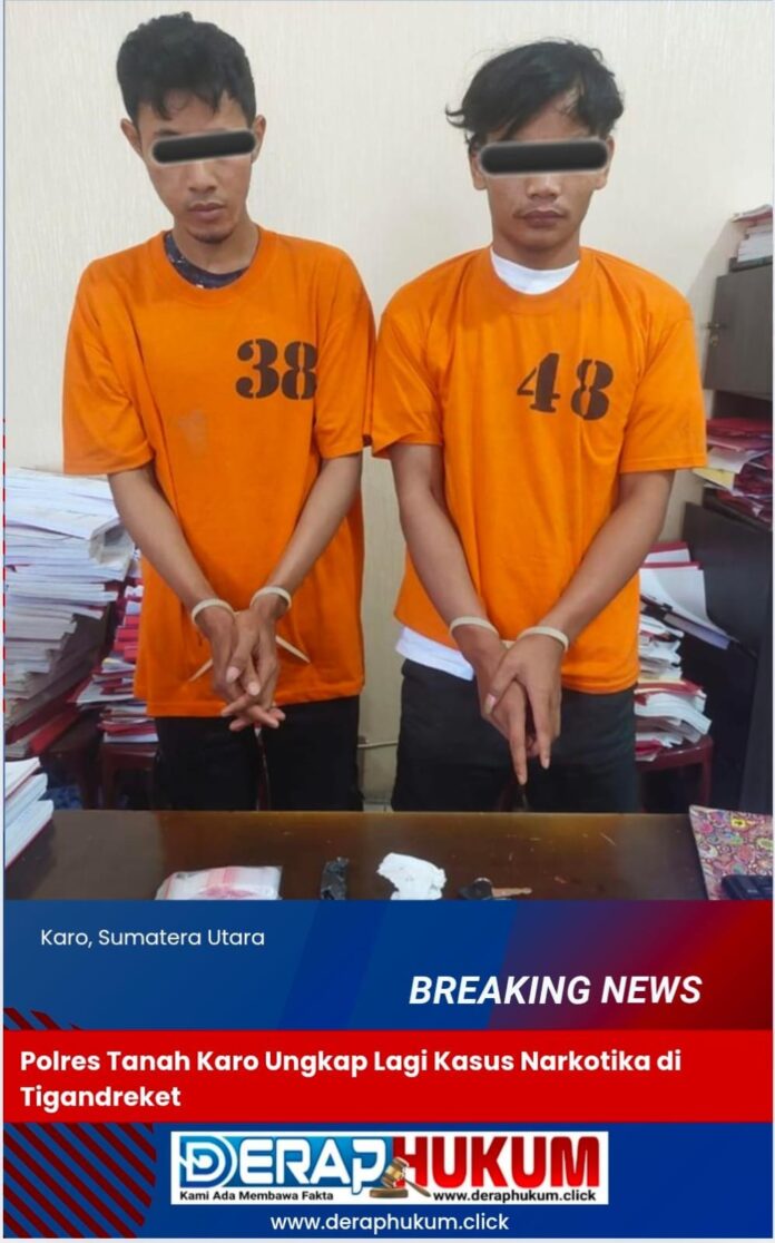 TIGANDREKET, KABANJAHE-KARO | Deraphukum.click | Satuan Reserse Narkoba Polres Tanah Karo mengungkap kasus peredaran narkotika di Desa Jandi Meriah, Kecamatan Tiganderket, Kabupaten Karo. Dalam ungkap kasus yang dilakukan pada Jumat(10/01/2025), sekitar pukul 00.30 WIB, petugas berhasil menangkap dua tersangka dan menyita sejumlah barang bukti.