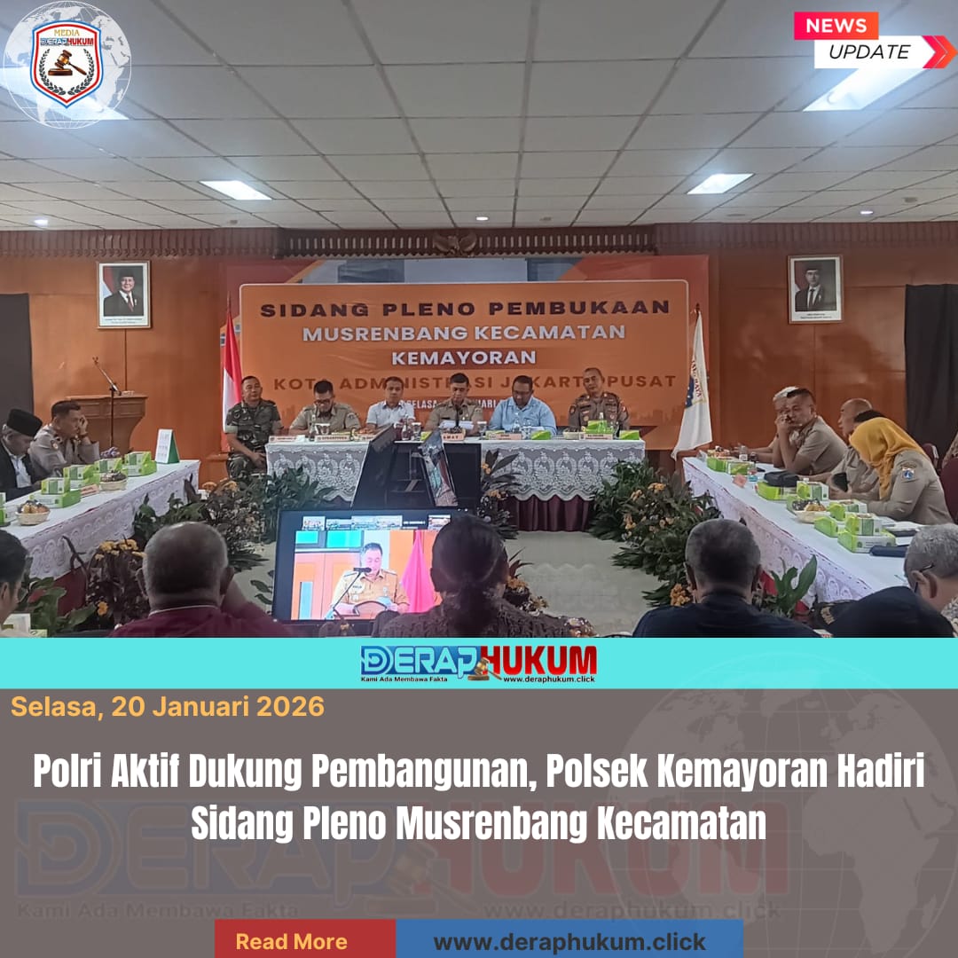 Jakarta Pusat | Deraphukum.click | Kepolisian Republik Indonesia (Polri) terus menunjukkan komitmennya dalam mendukung pembangunan wilayah melalui sinergi lintas sektor. Hal ini ditunjukkan dengan kehadiran Polsek Kemayoran pada Sidang Pleno Pembukaan Musyawarah Perencanaan Pembangunan (Musrenbang) Kecamatan Kemayoran yang digelar pada Selasa (29/1/2026).