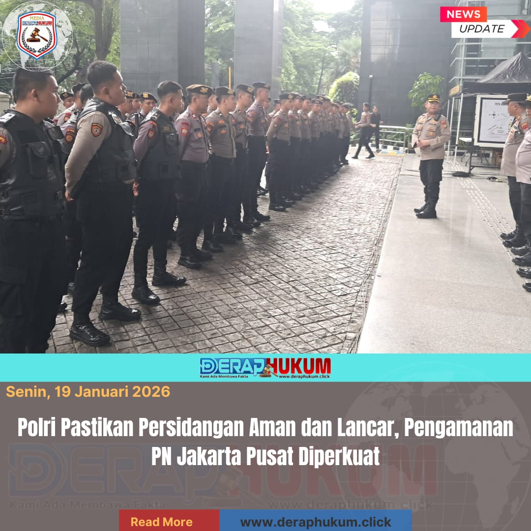 Jakarta Pusat | Deraphukum.click | Polri memastikan jalannya persidangan di Pengadilan Negeri (PN) Jakarta Pusat berlangsung aman dan lancar dengan memperkuat pengamanan pada Senin (19/1/2026). Langkah ini dilakukan guna mendukung kelancaran proses peradilan serta menjaga situasi tetap tertib dan kondusif.