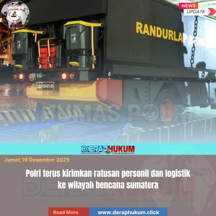 | Deraphukum.click | Kepolisian Negara Republik Indonesia (Polri) kembali menunjukkan komitmennya dalam penanganan bencana alam dengan memberangkatkan ratusan personel beserta bantuan logistik kemanusiaan ke sejumlah wilayah terdampak bencana di Provinsi Aceh, Sumatera Utara, dan Sumatera Barat. Pemberangkatan tersebut dilaksanakan dari Dermaga 106 Pelabuhan Tanjung Priok, Jakarta Utara pada Selasa malam (16/12). Pengiriman pasukan dan logistik ini merupakan bagian dari Operasi Aman Nusa II, yang secara khusus dirancang untuk merespons bencana alam secara cepat, terkoordinasi, dan berkelanjutan.