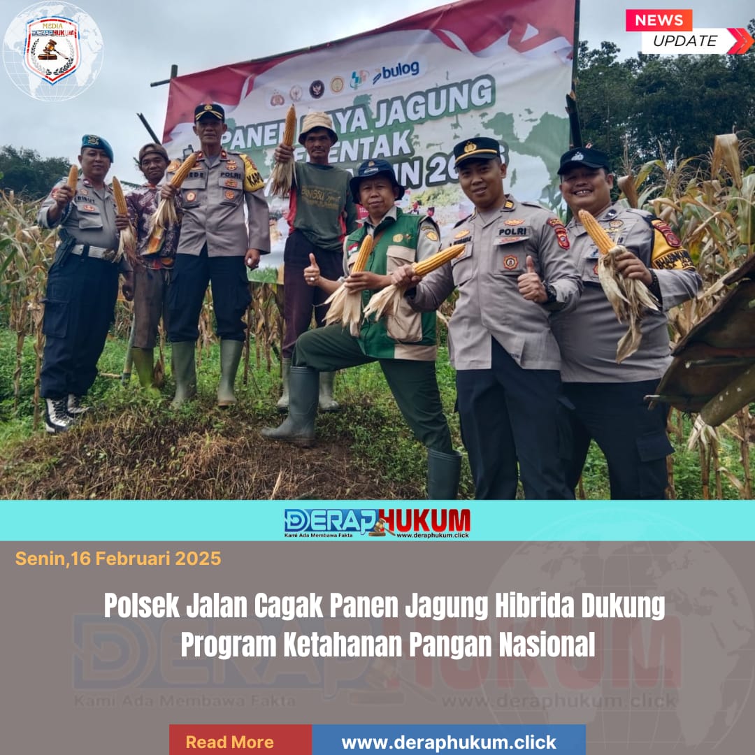 Subang,Jawa Barat l Deraphukum.click l Dalam rangka mendukung program ketahanan pangan dan swasembada jagung hibrida, Polsek Jalan Cagak melaksanakan kegiatan panen jagung hibrida bersama kelompok tani Cinangka satu Ciseuti, Desa Jalan Cagak, Kecamatan Jalan Cagak, Senin (16/02/2026).