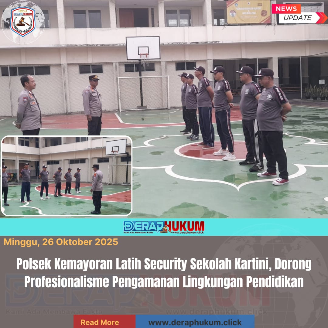 JAKARTA PUSAT | Deraphukum.click | Dalam rangka meningkatkan kemampuan dan profesionalisme petugas keamanan di lingkungan pendidikan, Polsek Kemayoran melalui Unit Binmas menggelar pelatihan bagi petugas security Sekolah Kartini yang berlokasi di Jalan Kalibaru Timur, Kelurahan Utan Panjang, Kecamatan Kemayoran, Jakarta Pusat, Minggu (26/10/2025).