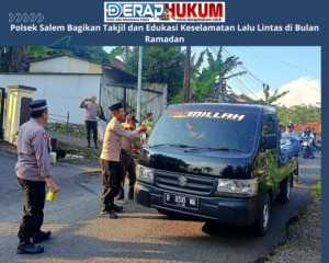 BREBES. | Deraphukum.click. | Dalam rangka meningkatkan kepedulian sosial dan mempererat hubungan dengan masyarakat di bulan suci Ramadan, Polsek Salem Polres Brebes menggelar kegiatan berbagi takjil kepada pengendara dan pejalan kaki yang melintas di depan Mapolsek Salem pada Rabu (12/3/2025) sore.