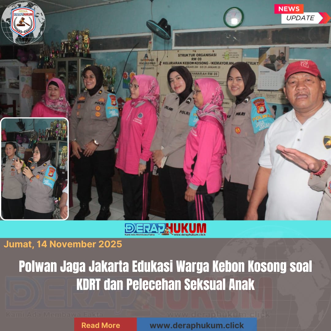 Tim Polwan Jaga Jakarta bersama Bhabinkamtibmas Kelurahan Kebon Kosong menggelar sosialisasi mengenai Kekerasan Dalam Rumah Tangga (KDRT), kekerasan terhadap anak, dan pelecehan seksual di Kantor Sekretariat RW 09, Kebon Kosong, Jakarta Pusat, Jumat (14/11/2025) pagi.