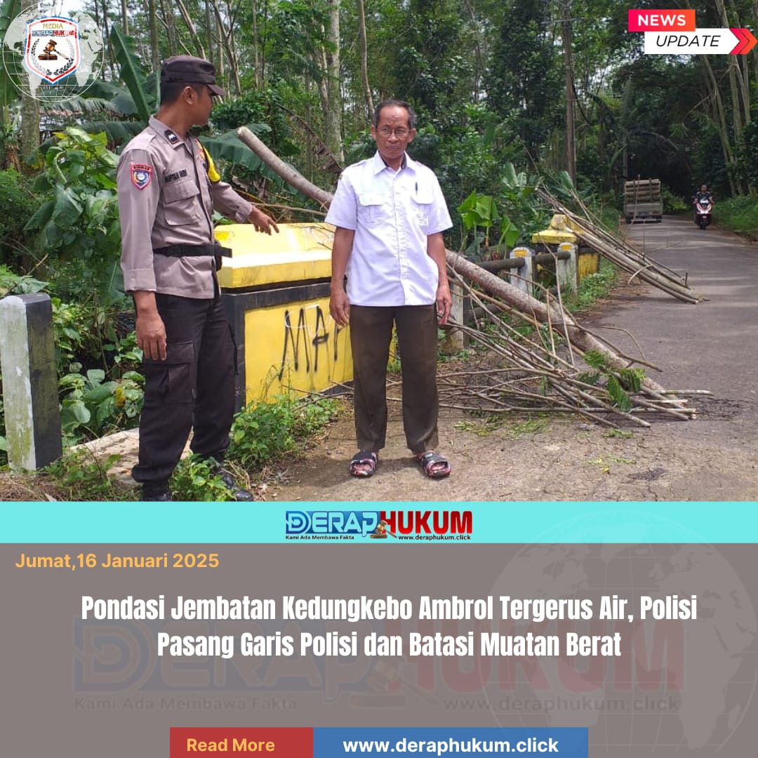 Pondasi Jembatan Kedungkebo Ambrol Tergerus Air, Polisi Pasang Garis Polisi dan Batasi Muatan Berat