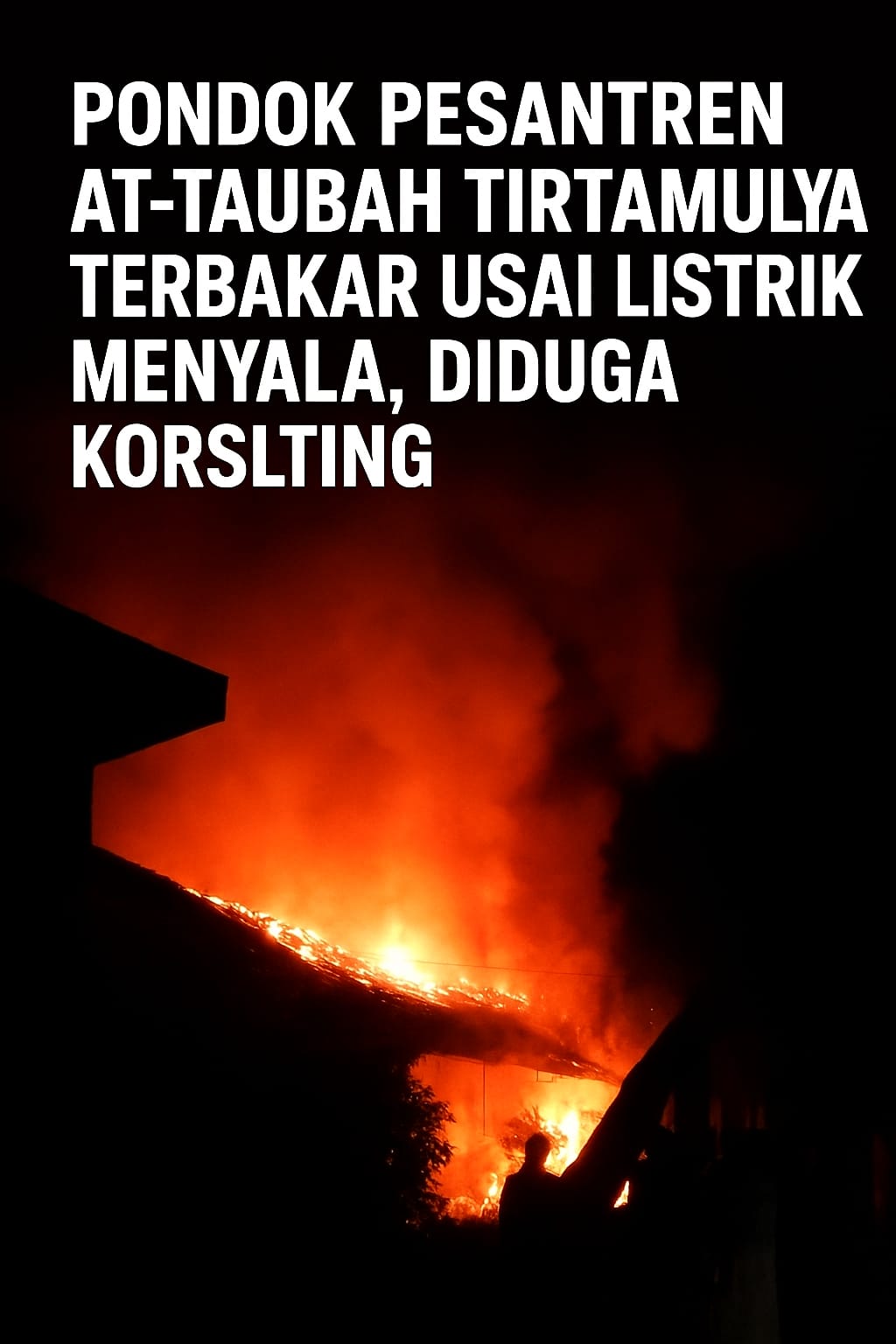 KARAWANG, JAWA BARAT | Deraphukum.click | Kebakaran hebat melanda Pondok Pesantren At-Taubah yang berlokasi di Kampung Kiaralawang, Desa Tirtasari, Kecamatan Tirtamulya, Kabupaten Karawang, pada Jumat (24/10) sekitar pukul 01.00 dini hari.