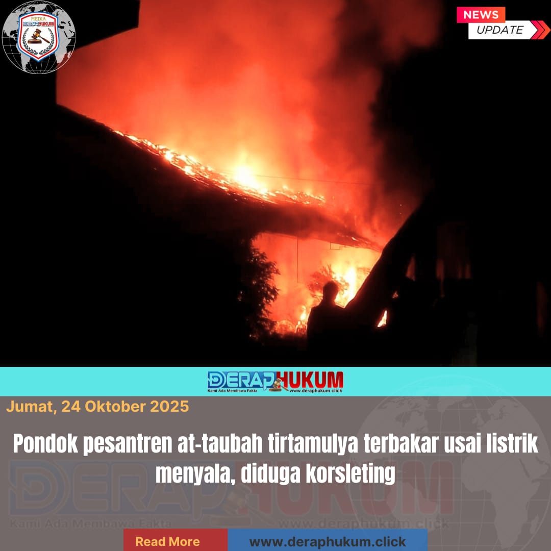 KARAWANG, JAWA BARAT | Deraphukum.click | Kebakaran hebat melanda Pondok Pesantren At-Taubah yang berlokasi di Kampung Kiaralawang, Desa Tirtasari, Kecamatan Tirtamulya, Kabupaten Karawang, pada Jumat (24/10) sekitar pukul 01.00 dini hari.