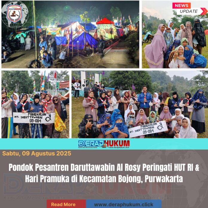 Purwakarta, Jawa Barat | DerapHukum.click | Pondok Pesantren Daruttawabin Al Rosy turut menyemarakkan peringatan Hari Ulang Tahun (HUT) ke-80 Kemerdekaan Republik Indonesia sekaligus memperingati Hari Pramuka tingkat Kecamatan Bojong, Kabupaten Purwakarta.