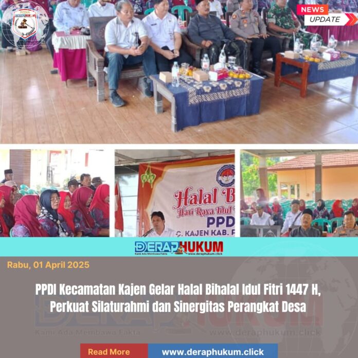 Pekalongan,Jawa Tengah | Deraphukum.click | Persatuan Perangkat Desa Indonesia (PPDI) Kecamatan Kajen, Kabupaten Pekalongan menggelar kegiatan Halal Bihalal Hari Raya Idul Fitri 1447 Hijriah di Aula Kantor Desa Kebonagung, Kecamatan Kajen.( 1/4/2026)