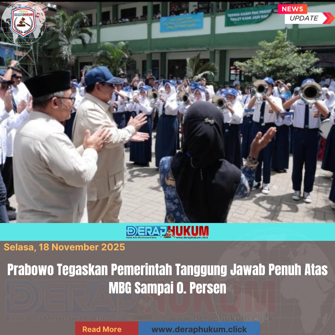 Bekasi, Jawa Barat | Deraphukum.click | Presiden RI Prabowo Subianto menegaskan bahwa pemerintah bertanggung jawab penuh atas insiden yang muncul terkait program Makan Bergizi Gratis (MBG).