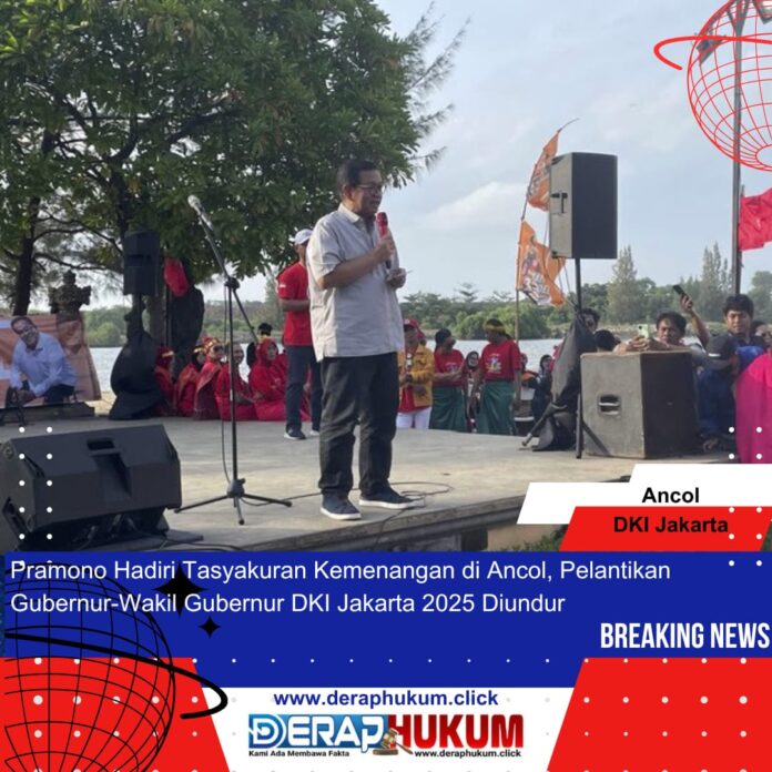 ANCOL-DKI JAKARTA | Deraphukum.click | 31 Januari 2025 – Gubernur Jakarta terpilih, Pramono Anung, menghadiri acara syukuran kemenangan Pilkada Jakarta 2024 yang berlangsung di Jimbaran Resto, Ancol, Jakarta Utara, pada Jumat (31/1). Acara ini diselenggarakan sebagai bentuk ungkapan rasa syukur atas hasil pilkada yang telah menetapkan pasangan Pramono Anung – Rano Karno sebagai pemimpin baru Jakarta untuk periode mendatang.