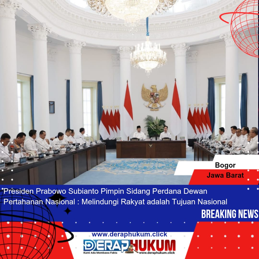 BOGOR,JABAR | Deraphukum.click | Presiden RI Prabowo Subianto memimpin sidang perdana Dewan Pertahanan Nasional di Istana Kepresidenan Bogor, Jawa Barat, Jumat (07/02/2025) siang.