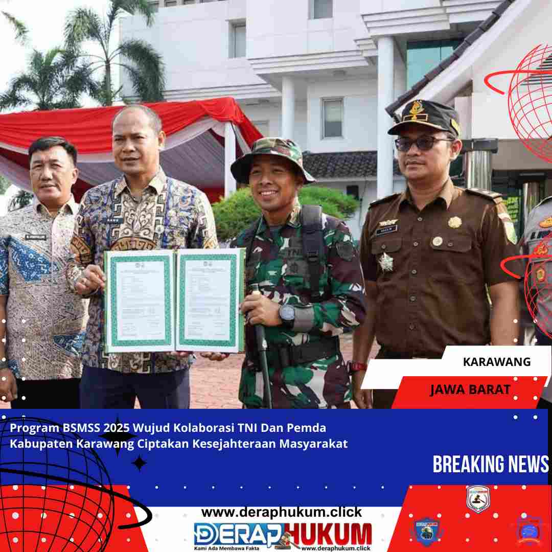 KARAWANG | Deraphukum.click | Bhakti Siliwangi Manunggal Satata Sariksa (BSMSS) Tahun 2025 di Desa Tegalurung Kec. Cilamaya Kulon Kabupaten Karawang resmi dimulai. Upacara Pembukaan Bhakti Siliwangi Manunggal Satata Sariksa (BSMSS) Tahun Anggaran 2025 dilaksanakan di Plaza Pemda Karawang, pada hari Kamis (27/02/2025).