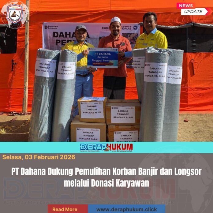 Subang, Jawa Barat l Deraphukum.Click l PT Dahana menyalurkan donasi karyawan bagi para korban bencana banjir dan tanah longsor yang melanda wilayah Aceh, Sumatera Barat, dan Sumatera Utara. Penyerahan bantuan dilaksanakan di Ponpes Dayah YPI Ummul Ayman II, pada Sabtu (31/1/2026).