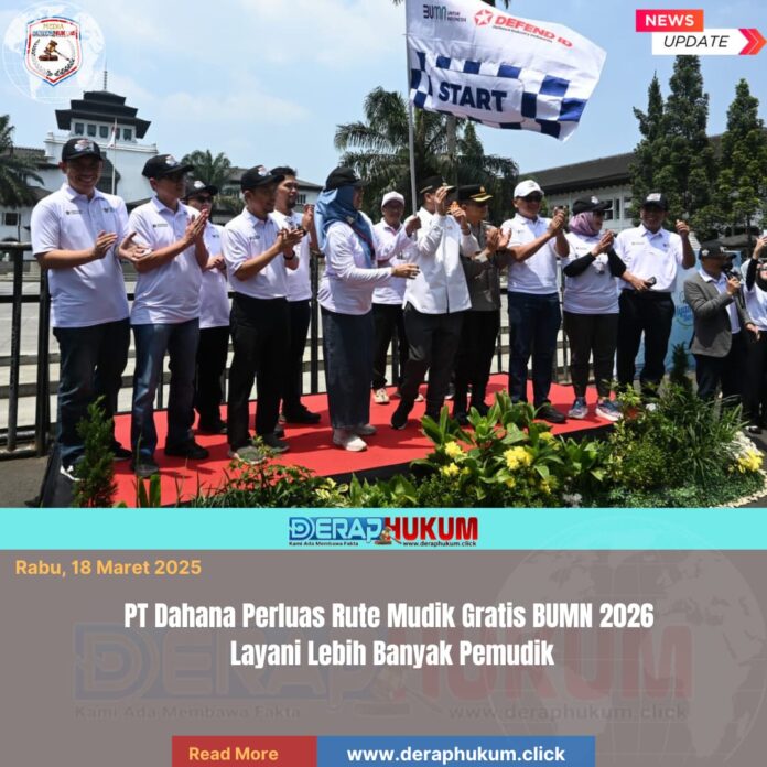 Subang,Jawa Barat l Deraphukum.click l PT Dahana kembali berpartisipasi dalam program nasional Mudik Gratis BUMN 2026 dengan memberangkatkan ratusan pemudik melalui tiga titik keberangkatan, yaitu Bale PT Dahana Subang, Gelora Bung Karno (GBK) Jakarta, dan Gedung Sate Bandung pada Selasa, (17 /03/ 2026).