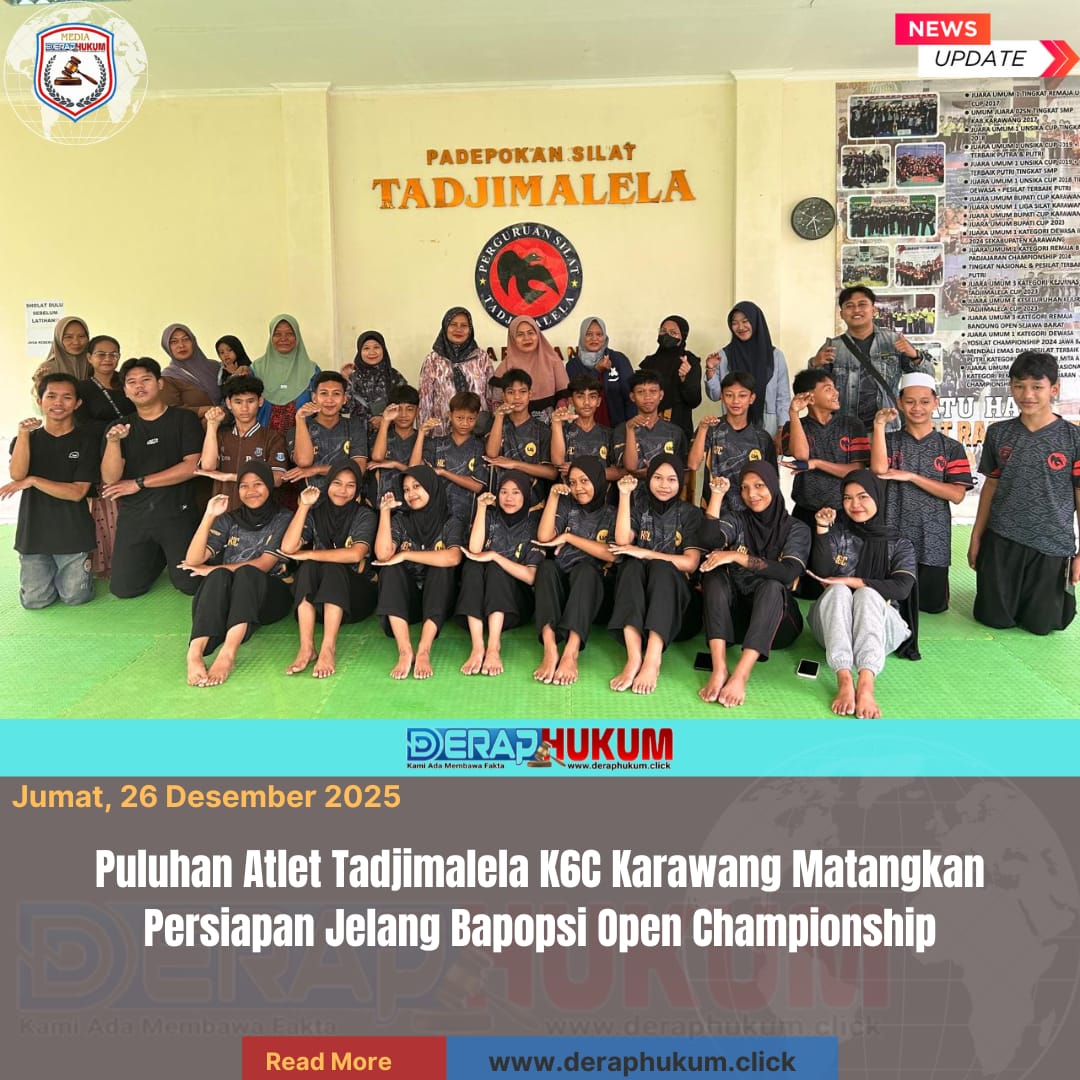 Karawang, Jawa Barat | Deraphukum.click | Sebanyak puluhan atlet Tadjimalela K6C Karawang terus mematangkan persiapan menjelang keberangkatan mengikuti Bapopsi Open Championship yang akan digelar di GOR ITB Sumedang pada 25–28 Desember 2025.