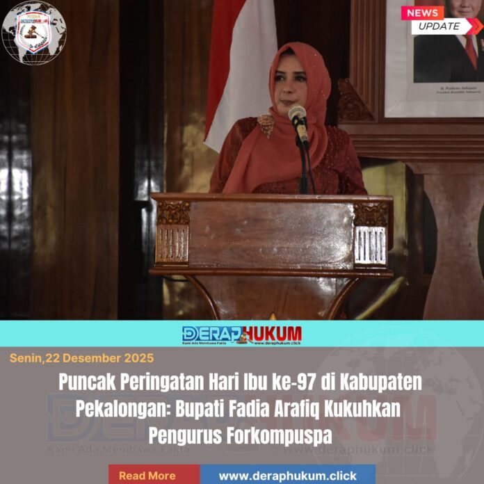 Kajen, | Deraphukum.click | Pemerintah Kabupaten Pekalongan menggelar acara puncak peringatan Hari Ibu ke-97 sekaligus Hari Bela Negara ke-77 yang berlangsung khidmat di Aula Setda Kabupaten Pekalongan, Senin (22/12/2025).