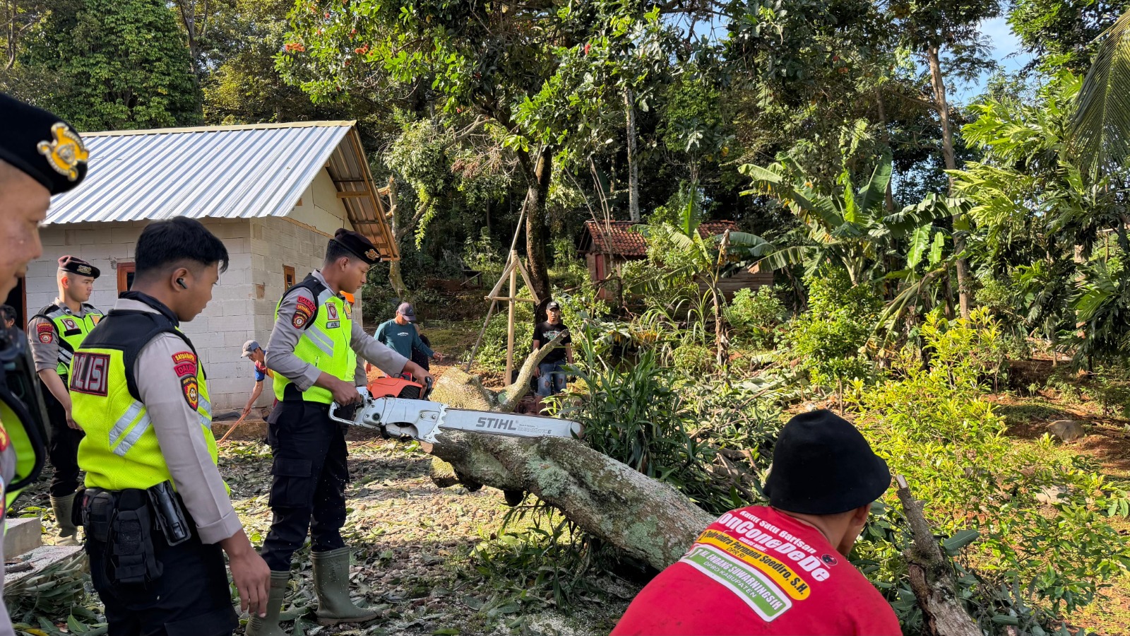 Puting Beliung Terjang Pedawang, Polsek Karanganyar dan Dalmas Gerak Cepat Evakuasi Pohon Tumbang