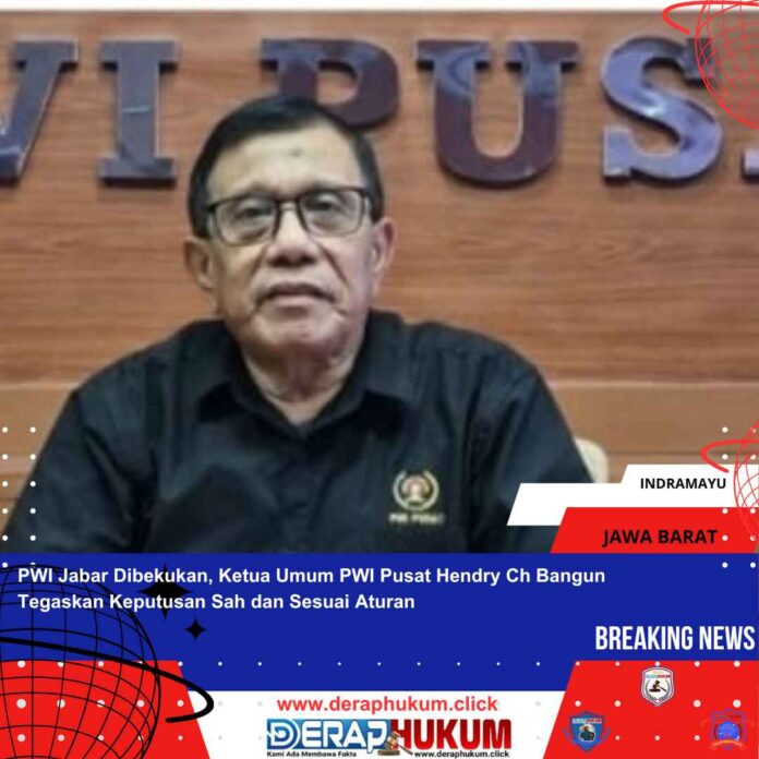 INDRAMAYU, | Deraphukum.clik | Ketua Umum PWI Pusat Hendry Ch Bangun menegaskan bahwa pembekuan PWI Jawa Barat (PWI Jabar) adalah keputusan yang sah dan diambil berdasarkan kewenangan organisasi. Tindakan ini dilakukan menyusul pelanggaran serius yang dilakukan pengurus PWI Jabar.